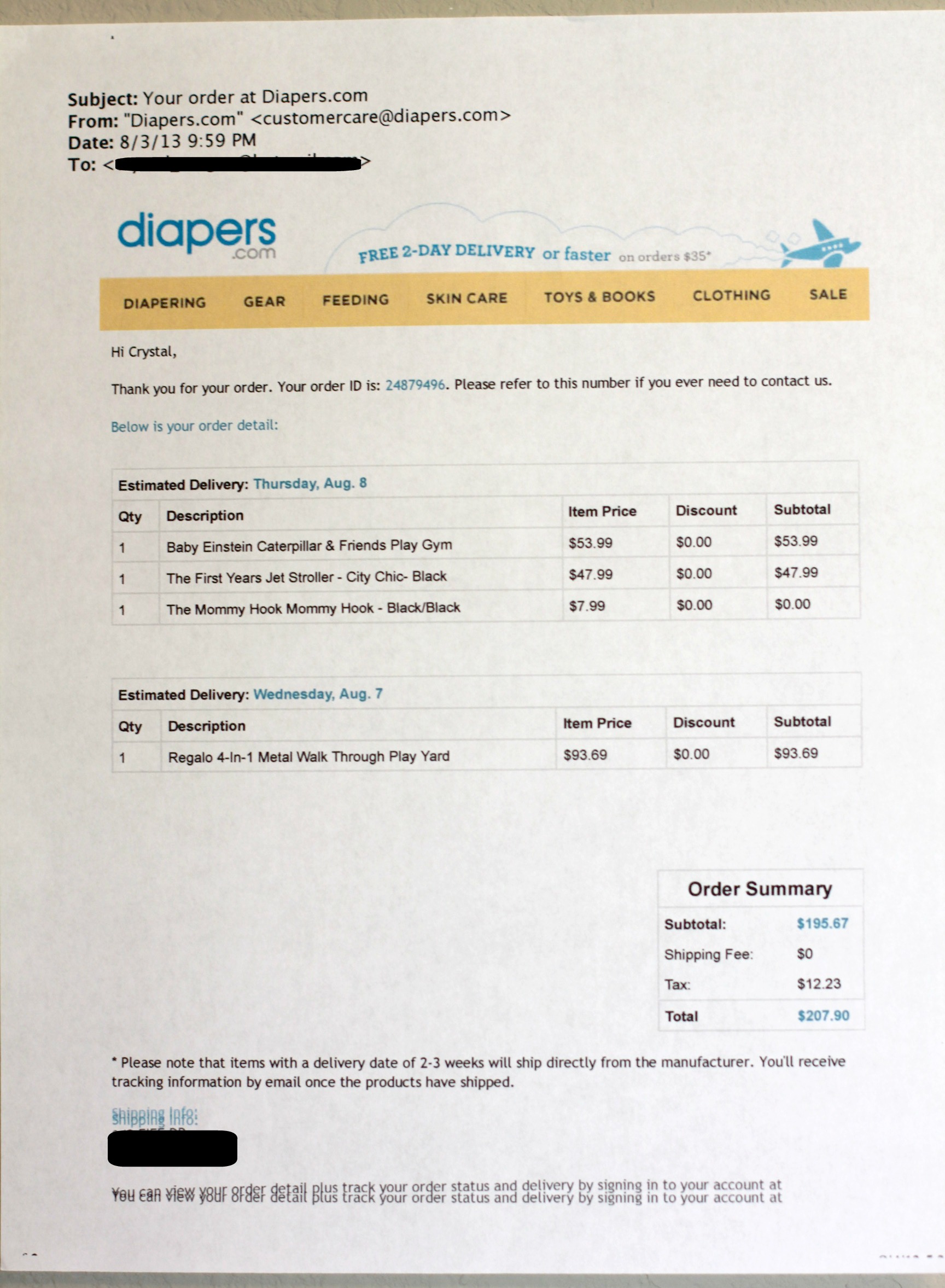 This past Saturday, I made duplicate purchases at Walmart.com and Diapers.com on a few baby related items. You may be wondering why in the world would I make a duplicate purchase? It’s a relevant question and in full transparency, it’s because Walmart reached out to me to put their everyday low prices to the test. I was given a list of products (with the exact UPC I was to purchase) and my mission was to purchase the exact same items online and see what the total cost was for both stores.